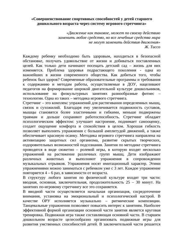 «Совершенствование спортивных способностей у детей старшего дошкольного возраста через систему игрового стретчинга»
